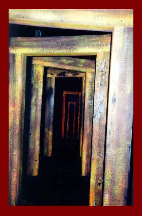 To the left, A Very simple yet effective stunt is the "Disco Ball" in a black room combined with a circular metal maze that is hard to transverse. To the right, yet another "Disturbing" and warped hallway, ALA Tracey Style. | ![]() |