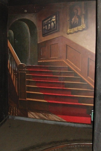 We turn to the left, and at the far end of the corridor, another beheading mural lights up... |