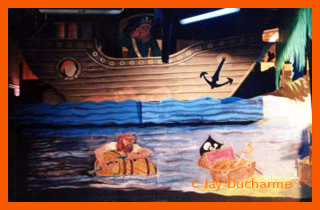 then turned 180 degrees past a stunt of a pirate bobbing up and down, and