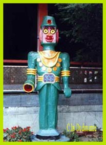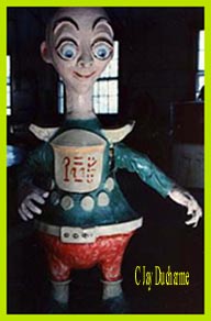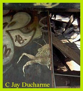ages. In the early 1990's, a man purchased one of the two robot statues and then drove around with it strapped to the roof of his car until vandals set it on fire. City youths took over the abandoned arcade, with its roof leaking and facade covered with graffiti, and used it as a skateboard arena until heavy snows collapsed the roof during the winter of 2000. Where there was once a thrilling work of art now sits a heap of rubble, indiscernible except for the roofline.
