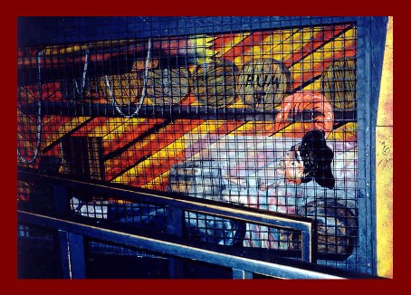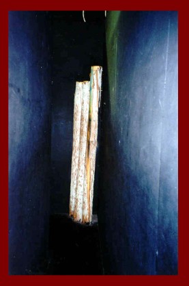Here is yet another example of how attention to details brings out the best in a walkthrough, ALA Bill Tracey Style! A few pieces of drift wood painted in day glow colors add to the mystic of walking down dark hallways. |