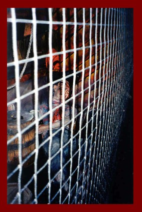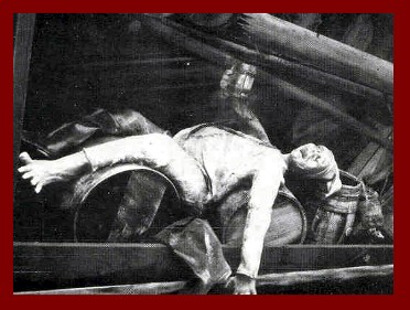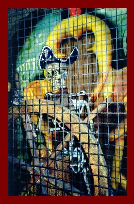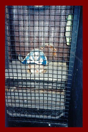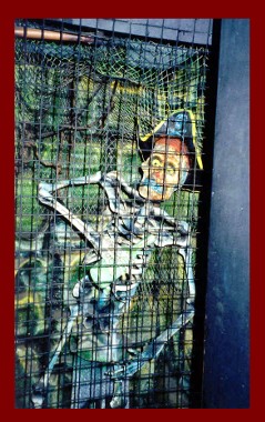 Here on the left is one sorry Pirate, poor guy is locked up in the Gallows! On the right is a hallway, dark, complete with a "Spinning Illusion Barrel" on the end. Don't "Heave Overboard"! |