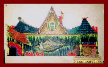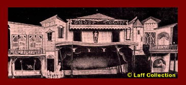 A never produced Tracey facade called "Ghost Town", in keeping with his desire to build "Old Western" Themed rides. Can you even begin to fathom what Madness Tracey would have included inside?!? Yet another example of Tracey Loving the "Old Western Drunken Cowboy Theme".
